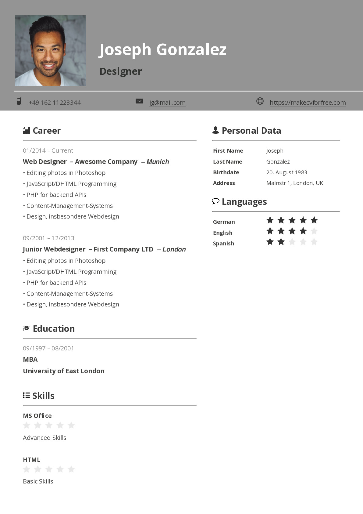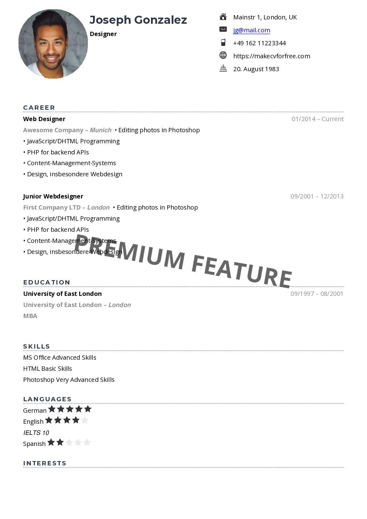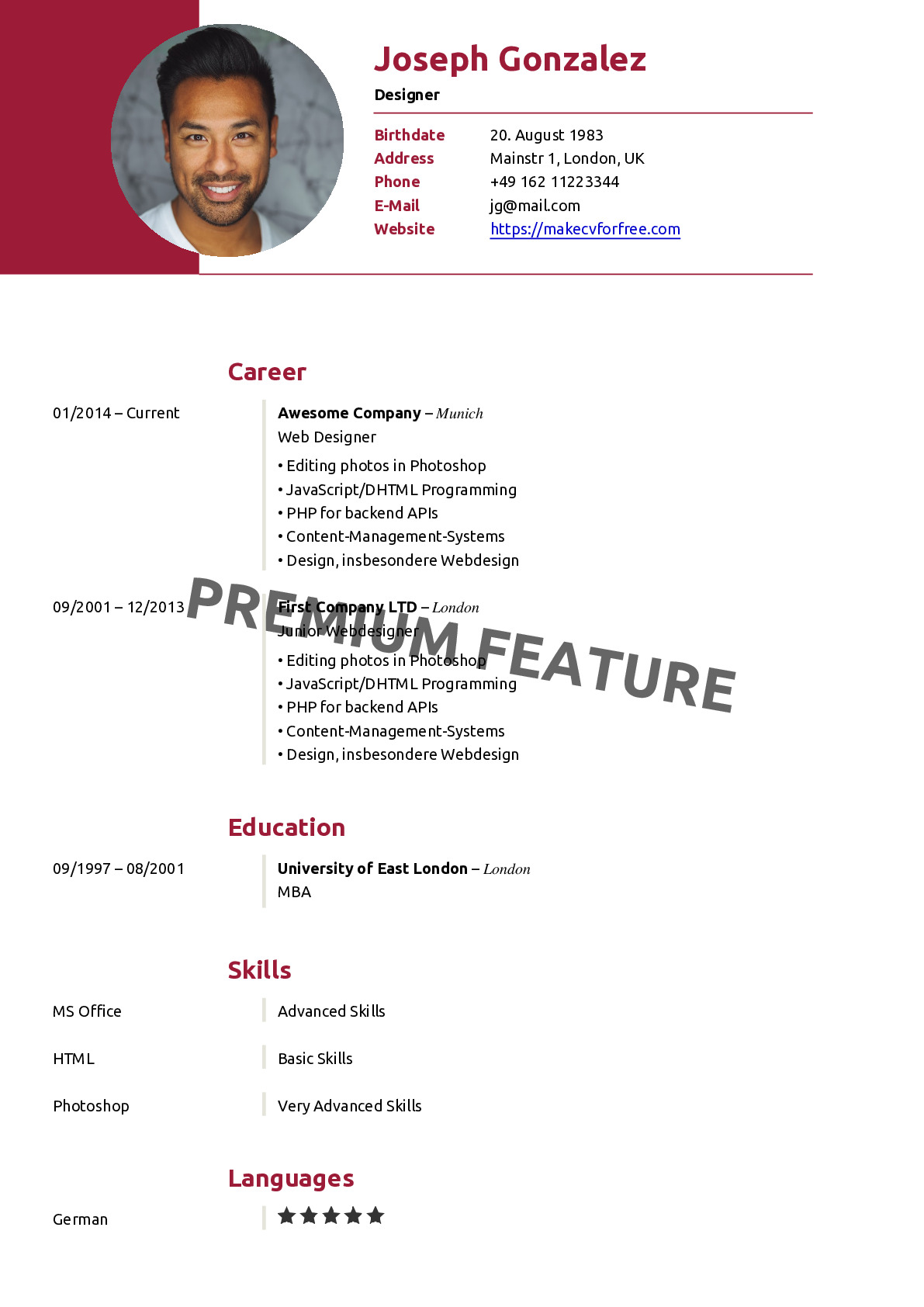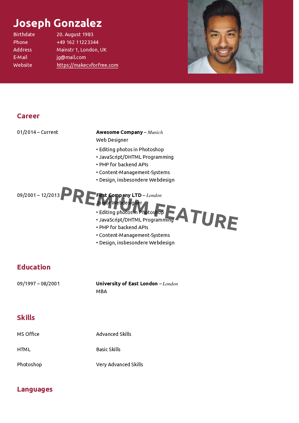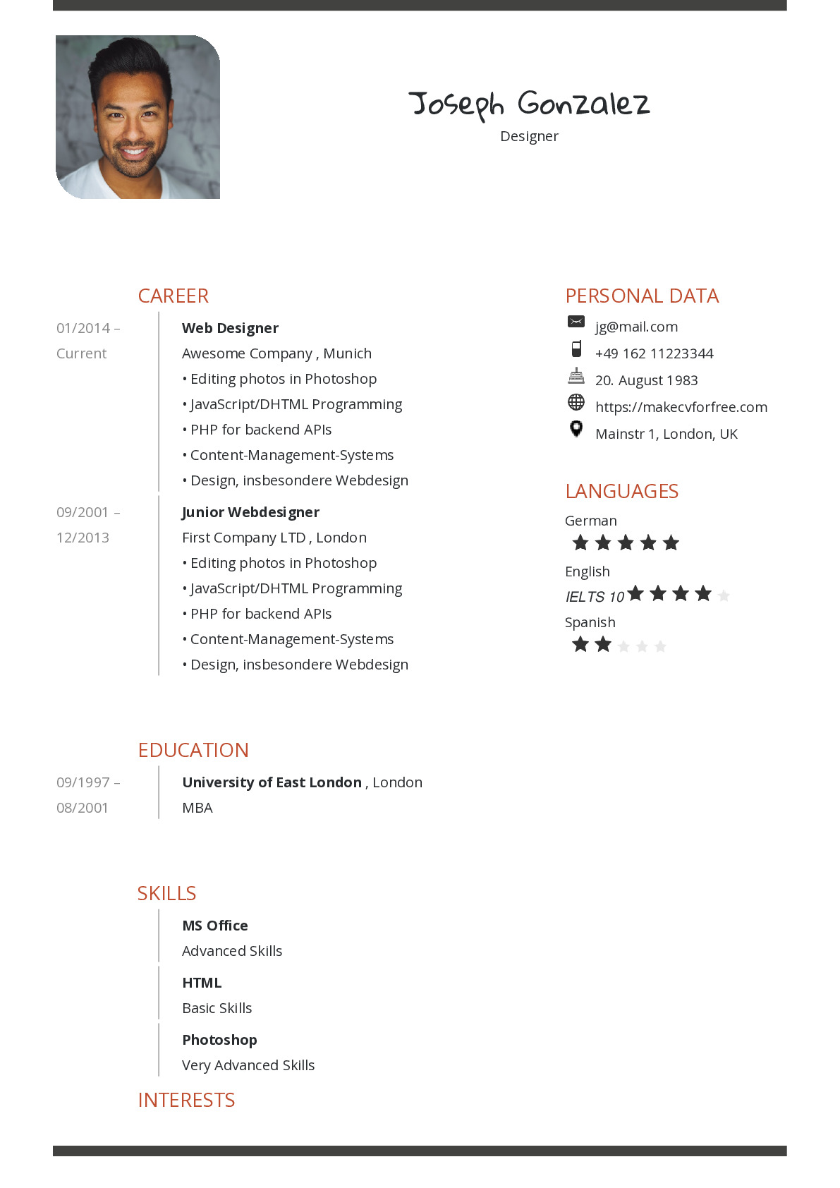 Vorlagen an, auf die Sie Ihren Lebenslauf bauen können. Sie wird Ihnen helfen den Inhalt Ihres Lebenslaufs so