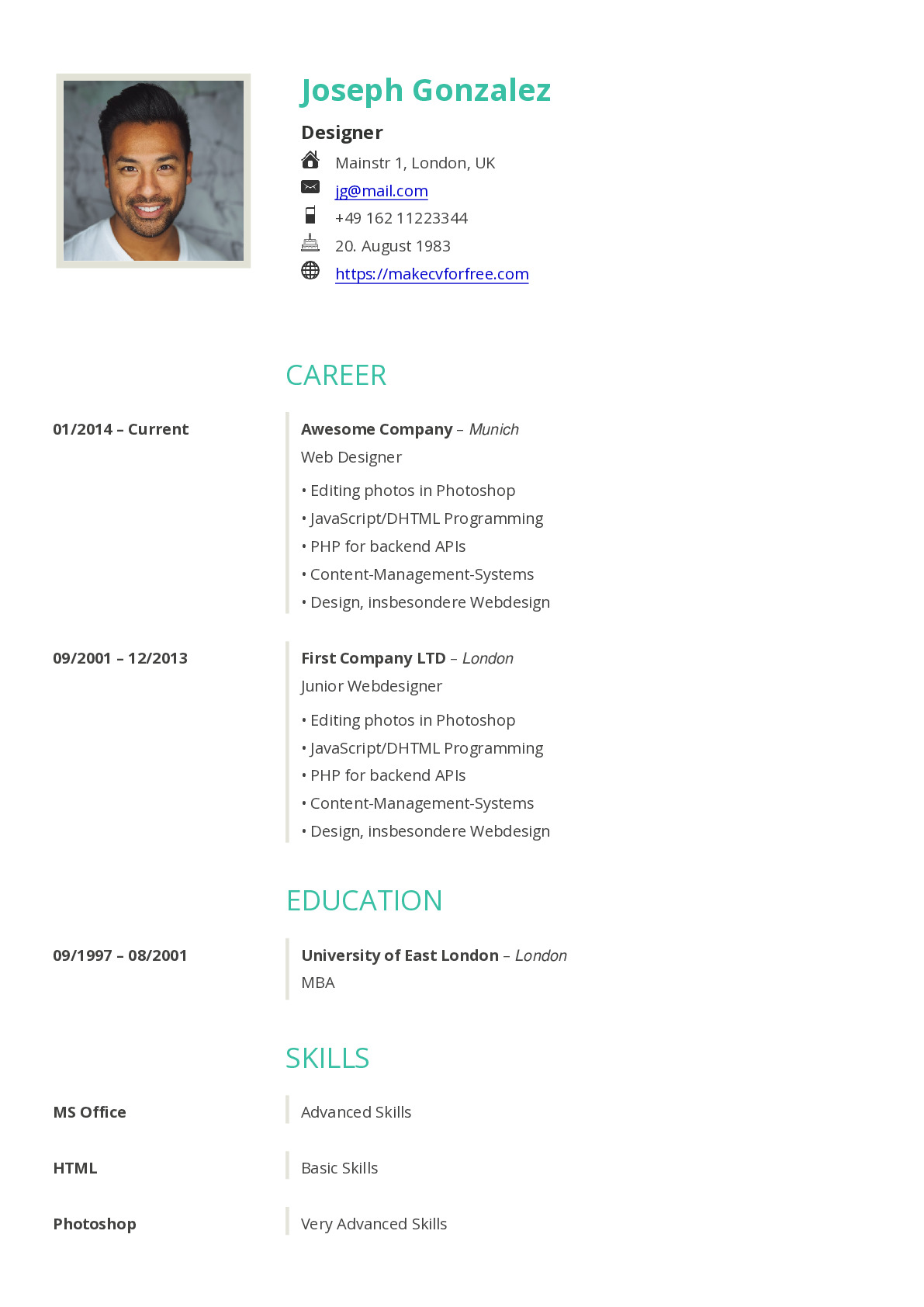 Download your resume as CV-file, in order to make changes in future. This is recommended, if you preferr not to sign up here.